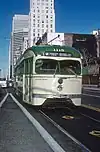 - ↑ Ehrlich, Peter (August 22, 1990). "MUNI F-LINE PCCs--Ex-SEPTA 2133 arr Metro Center". Flickr. Retrieved 22 November 2021.