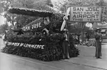 In 1929, the chamber raised $480,000 in donations by Santa Clara County residents to acquire a 1,000-acre (400 ha) parcel of the Yñigo Ranch on the San Francisco Bay and sold it for a nominal price to the U.S. Navy to serve as an airbase for the USS Macon airship and later Moffett Federal Airfield.[8] In 1939, Ernie Renzel, a wholesale grocer and future mayor of San Jose, led the chamber's Citizens Central Airport Committee and personally negotiated the purchase of 483 acres (195 ha) of the Stockton Ranch from the Crocker family to be the site of San Jose's municipal airport. Renzel led an effort to pass a bond measure to pay for the land in 1940, overcoming reluctance by fiscally conservative city councilmembers and City Manager C. B. Goodwin.[9][10][11]