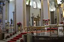 It has a Baroque façade designed as a screen, similar to the one of the Basilica of Guadalupe in Mexico City, has three bodies.