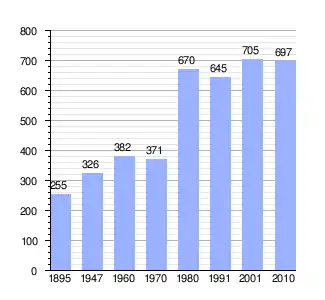 Vertical bar chart demographic of San Martín, San Luis between 1895 and 2010 |