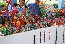 ![]() Woman looking at Alebrijes for sale at the weekly market | |