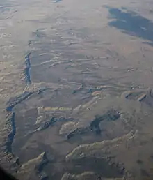 The mesas are capped by the Upper Cretaceous Point Lookout Sandstone, which is underlain by the Crevasse Canyon Formation.[1]
