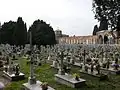 The Protestant section of San Michele is known as "Reparto Evangelico" in Italian. It is owned by Venice City Council and operated by three Protestant denominational bodies present in Venice, namely the Waldensian Evangelical Church, the Anglican Church and the Evangelical Lutheran Church in Italy. Although the main Catholic burial ground started operating in the early 1800s, Protestant burials took place later at its current dedicated plot (Recinto XV). The Protestant section is surrounded on all four sides by a brick wall, with access via an iron gate linking it with the Catholic Cemetery. There have been around 600 burials in the Protestant section over the last 150 years.[5]
