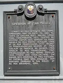 The Royal Parish and National Shrine of Saint Michael and the Archangels (Spanish: Parroquia Real y Santuario Nacional de San Miguel y los Arcángeles), also known as San Miguel Church, is a Roman Catholic church of the Latin Rite dedicated to the archangels, namely, Saint Michael, Saint Gabriel, Saint Raphael .[3]