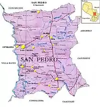 San Pablo is a district of the San Pedro Department, Paraguay. It includes the village of San Pablo or San Pedro de Ycuamandiyú, which has a population of around 680, located around 330 km from the city of Asuncion.