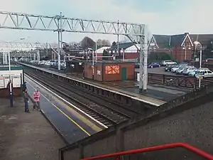Sandbach railway station serves the town of Sandbach in Cheshire, England. The station is 4+3⁄4 miles (8 km) north-east of Crewe on the Crewe to Manchester Line.
