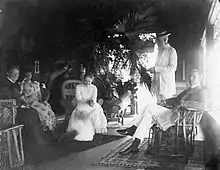 As president of the republic, Dole traveled to Washington, D.C., in early 1898 to personally urge annexation of Hawaii by the United States. Dole and his party traveled from Honolulu to San Francisco via steamship, arriving in the Bay on January 16.[19] This marked the United States's fifth state visit by a foreign leader, the first being King Kalakaua's visit to the United States in 1874.[20] After arriving in San Francisco, President Dole stayed in San Francisco's Occidental Hotel, before leaving the city for Washington D.C on January 19.[21] On the President's last day in San Francisco, he was given a tour of the Presidio of San Francisco by General William Rufus Shafter, with the military band playing upon his arrival, and also had a luncheon with San Francisco's mayor James D. Phelan.[22] President Dole and his party took off for Washington D.C via railroad, using a private railcar called "Guadalupe", supplied by Henry E. Huntington.