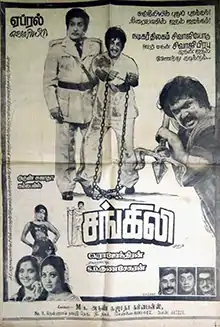 Sangili (transl. Chain) is a 1982 Indian Tamil-language action drama film, directed by C. V. Rajendran and produced by S. D. Gunasekaran. The film stars Sivaji Ganesan, Prabhu (in his debut film appearance), Sripriya, Major Sundarrajan, Sumithra and M. N. Nambiar.[1] It is a remake of the 1976 Hindi film Kalicharan.[2] The film was released on 14 April 1982.
