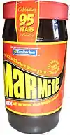 Marmite is a food spread made in New Zealand. It is made from yeast extract, by-product of beer brewing.