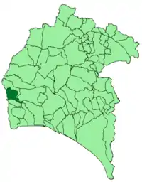 Sanlúcar de Guadiana is a localidad in the province of Huelva, Andalusia, Spain, situated near the Portugal–Spain border, 50 kilometres (31 mi) from the city of Huelva. The inhabitants are known as Sanluqueños. The village borders the Guadiana River, which is tidal at this point, but the higher parts of the village rise to an altitude of 149 metres (489 ft).