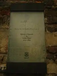 The old temple, today the museum of Santa Clara, belonged to the Franciscan female order of the Poor Clares[4] that was founded in Santa Fe de Bogotá in the year 1629. It was built by the Spanish architect Matías de Santiago,[4] its work began in 1629 and was completed in 1647.[4] As for its internal ornamentation, it can be said that the temple had two decorative stages: a first (covering the entire 17th century and part of the 18th) in which mural painting was evident throughout the temple, and a second, located in the second half of the 18th century, in which the wood veneer attached to the walls and the definitive conformation of its pictorial, sculptural and altarpiece ensemble are evident.