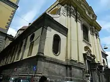 During the Angevin reign a number of important events occurred in this monastery, such as the convening of parliament in 1394 by the Sanseverino family, who were supporters of Louis II of Anjou.[1] In 1490, the architect Giovanni Francesco Mormando from Calabria laid the foundations of the present church, which was completed by the 16th century by Giovanni Francesco di Palma.[2] The cupola built in 1561 was one of the first in Naples, designed by the Florentine architect Sigismondo di Giovanni.[3]