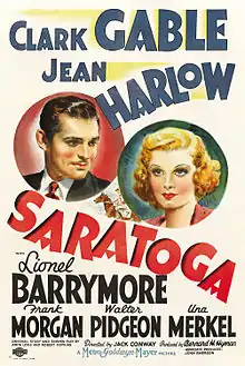 Saratoga is a 1937 American romantic comedy film starring Clark Gable and Jean Harlow and directed by Jack Conway. The screenplay was written by Anita Loos. Lionel Barrymore, Frank Morgan, Walter Pidgeon, and Una Merkel appear as featured players; Hattie McDaniel and Margaret Hamilton appear in support. It was the sixth and final film collaboration of Gable and Harlow.