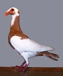 The Scandaroon is a breed of fancy pigeon developed over many years of selective breeding.[1] Scandaroons, along with other varieties of domesticated pigeons, are all descendants from the rock pigeon (Columba livia). The breed is also known as a Nuremberg Bagdad.[2]