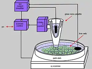- 1 2 Chen CC, Zhou Y, Baker LA (2012). "Scanning ion conductance microscopy". Annual Review of Analytical Chemistry. 5: 207–228. Bibcode:2012ARAC....5..207C. doi:10.1146/annurev-anchem-062011-143203. PMID 22524219.