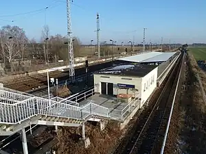Schönfließ is a railway station in the Oberhavel district of Brandenburg. It is served by the S-Bahn line S8. It lies on the Berlin outer ring and was formerly served by regional trains.