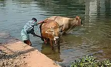 The definitive hosts of Schistosoma spindale are (mainly) ruminants and Schistosoma spindale cause intestinal schistosomiasis of ruminants (Artiodactyla, Ruminantia).[5] Surveillance for cattle schistosomiasis is generally inadequate and the literature is limited, but some idea of the problem can be gained from past small scale studies.[5] For a diagnosis there is need to find eggs of Schistosoma spindale in feces.[6] Surveys in Sri Lanka revealed prevalence of Schistosoma spindale of 31.2% (of 901 cattle),[6] whilst in Bangladesh a similarly high prevalence of 36% has been reported.[5][7] More recently, in Kerala South India, prevalences have been reported up to 57.3% in cattle, 50% in water buffalo (Bubalus bubalis) and 4.7% in goats.[5][8] The prevalence of Schistosoma spindale in the animals depends on the diagnostic test employed. Thus, it was as low as 10–30% by faecal examination (again low if egg detection method is employed and high if hatching method is followed) with as high as 80–95% by examining mesentery of the animals for live schistosomes during post mortem.[9] Schistosoma spindale was found causing an outbreak in cattle in Maharashtra leading to heavy mortality with symptoms similar to Rinder pest.[10]