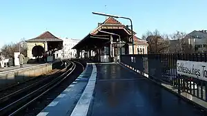 The exceptionally richly designed station opened on 18 February 1902, on the first U-Bahn line erected by the Siemens & Halske company (the Stammstrecke). On 11/12 March 1945, this station was directly hit, and the track area was severely damaged. During the division of Berlin after 13 August 1961, the station was the eastern terminus of the U1, as the final station, Warschauer Straße, was in East Berlin. The link was reopened in 1995. An intermediate station at the Spree river, Stralauer Tor, had been destroyed in 1945 and never reopened.