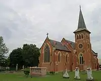 Allan Cunningham was the first recorded European person to travel into the Scone area, reaching the Upper Dartbrook and Murrurundi areas in 1823.[5] Surveyor Henry Dangar travelled through the area, prior to passing over the Liverpool Range above Murrurundi in 1824. The first properties in the area were Invermein and Segenhoe in 1825. The town initially started as the village of Redbank in 1826 and in 1831 Hugh Cameron, a Scottish descendant put forward the name of Scone to Thomas Mitchell.[5] It was gazetted as Scone in 1837 and during the early days was renowned for its large pastoral properties including Belltrees and Segenhoe.[6] Early buildings were St Luke's Church, Scone Post Office, the Old Court Theatre (that is now a hall for musicals and plays), and the St Aubins' Inn.