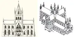 In December 1164, during the reign of King Máel Coluim IV, Scone Priory was raised to an abbey.[1] Scone Abbey had important royal functions, since it was located next to the coronation site of Scottish kings and housed the Stone of Destiny until its theft by King Edward I of England. Scone Abbey was, according to King Máel Coluim IV, "in principali sede regni nostri" (RRS, no. 243; trs. "in the principal seat of our kingdom"). As such, Scone Abbey was one of the chief residences of the Scottish kings, who were hosted by the abbot during their stay at Scone. Most likely the king stayed in the abbot's own rooms within the abbot's palace. It is very likely that the abbey buildings (now gone) overlapped with the modern palace. The abbey also had relics of a now obscure saint by the name of St Fergus (also Fergustian), which made it a popular place of pilgrimage. Although the abbey long remained famous for its music since Robert Carver produced there some of Europe's best late medieval choral music into the late 16th century, its status declined over time.
