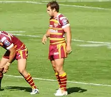 He previously played in the Super League for St Helens (Heritage № 1145), Huddersfield Giants, London Broncos, Castleford Tigers (Heritage № 885), and in the NRL for the North Queensland Cowboys.[2][3][4] Moore signed for Swinton in the Betfred Championship, after starting the season at the Rochdale Hornets for the 2019 season, following his release from prison.