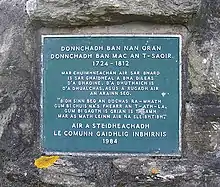 Donnchadh Bàn Mac an t-Saoir (usually Duncan Ban MacIntyre in English; 20 March 1724 – 14 May 1812)[37] is one of the most renowned of Scottish Gaelic poets and formed an integral part of one of the golden ages of Gaelic poetry in Scotland during the 18th century. He is best known for his poem about Beinn Dorain; "Moladh Beinn Dòbhrain" (English: "Praise of Ben Doran"). Most of his poetry is descriptive and the influence of Alasdair MacMhaighstir Alasdair is notable in much of it. Despite the Jacobite upheavals during his lifetime, it was his experience as a gamekeeper in Argyll and Perthshire in the employ of the Duke of Argyll which had greatest impact upon his poetry. Moladh Beinn Dòbhrain, stems from this period. The significance of Duncan Bàn's nature themed poetry is such that it has, along with that of MacMhaighstir Alasdair, been described as "the zenith of Gaelic nature poetry".[38]