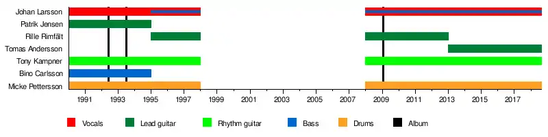 - Johan Larsson – vocals, (1990-1998, 2008-present), bass (1995-1998, 2008-present)