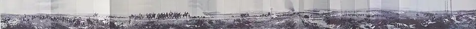 Nagycsűr was built in the Krummbach stream's valley. On its southern side, Alter Berg rose more than 100 meters above the village, and the slope towards Nagyszeben was covered with vineyards. The rest of the hill was barren.[31] The plain at the southern foothills, interspersed with small willows and serving mainly as a pasture, in addition to several waterways, was crisscrossed by draining ditches in all directions, which were hindering, in particular, the rapid movement of cavalry and artillery.[31]