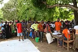In addition to refugees in Liberia, a significant number of displaced Ivorians stayed in camps throughout western Ivory Coast. The largest was in the Catholic Mission in Duékoué, where at one point church officials estimated 28,000 displaced were staying each night.[75] The displaced persons ultimately were relocated from the Catholic Mission to the Nahibly camp on the outskirts of Duékoué. The camp was burned down by attackers in July 2012, killing 7 and chasing about 5,000 people from their temporary homes.[90]