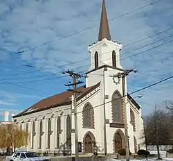 Second Presbyterian Church is a historic Presbyterian church located at 419 W. Washington St., Petersburg, Virginia. It was designed by architect and church pastor Theodorick Pryor and was built in 1861–1862, in the Gothic Revival style. It has stucco covered brick walls and a tower that protrudes from the central bay of its three-bay entry facade. The interior features iron ornamentation, cast by a foundry in Petersburg at the beginning of the American Civil War.[1]