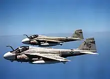 Attack Squadron 65 (VA-65), nicknamed The World Famous Fighting Tigers, was an attack squadron of the United States Navy. The squadron was established as Torpedo Squadron VT-74 in 1945, redesignated as VA-2B in 1946, as VA-25 on 1 September 1948, and finally redesignated VA-65 on 1 July 1959. It was disestablished in 1993. Known as "The World Famous Fighting Tigers", VA-65 was one of the last medium attack squadrons to fly the A-6 Intruder and the A-1 Skyraider. It was the second squadron to be designated VA-65, the first VA-65 was redesignated from VA-6B on 27 July 1948 and would be redesignated as VA-25 on 1 July 1959.[1]