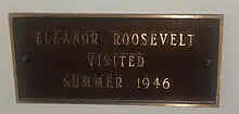 The former home of Senator John G. Townsend, Jr., located at 11 South Main Street at the intersection with West McCabe Street, became the site of the Selbyville Public Library in 1966. A plaque in the library identifies Senator Townsend's dining room, where former First Lady Eleanor Roosevelt dined with the senator in 1946. Other distinguished visitors included future president Richard Nixon. The home was built in 1904. The senator's family donated it to the library after his death.[9]