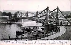 Several skeletons, potshards, weapons, and jewels were discovered here, dating from the 5th and 6th century, attesting to Seraing being inhabited in Frankish times. The first mention of Saran dates from 956, when a Carolingian farming domain extending on both sides of the river Meuse and owned by someone named Saran was donated to the abbey of Sint-Truiden. The whole territory soon passed to the Prince-Bishopric of Liège. In the 11th century, Prince-Bishop Henri I of Verdun used a house in Seranus to entertain guests. Throughout the Middle Ages, the inhabitants of Seraing owed allegiance to Liège, pledging to defend the fluvial approach to the city in case of invasion, in exchange for tax exonerations. The first wooden bridge across the river, which replaced the ferry, was built in 1381.