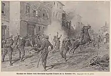 On 24 August the liberation of Šabac, the largest town in Mačva, marked the ultimate failure of the first Austro-Hungarian invasion of Serbia.[17] This victory marked the first Allied victory of the war over the Central Powers. Casualties numbered 600 officers and 23,000 men for the Austro-Hungarians (4,500 of whom were captured) and 259 officers and 16,045 men for the Serbian Army.[18]