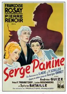Serge Panine is a 1939 French drama film directed by Charles Méré and Paul Schiller and starring Françoise Rosay, Pierre Renoir and Andrée Guize.[1] It was based on a novel of the same title by Georges Ohnet.