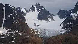 The island is located on the shores of Davis Strait, separated from Maniitsoq Island in the south by the Ammarqoq Sound, and from the mainland in the east by the Ikamiut Kangerluarsuat fjord.[2] The island is very mountainous and glaciated in the north, with several distinct mountain peaks. The highest point on the island is 1,031 metres (3,383 ft).[1]