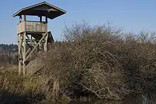 Its proximity to main urban areas such as White Rock, Ladner, and Surrey combined with the convenience of being between Highway 99 and King George Highway (99A). However, due to the high number of traffic in the area, no data on visitors is publicly available. The Serpentine Wildlife Management area has a 3.5 km long level trail that loops around its circumference, roughly taking 1.5 hours to walk, and is open year-round.[27] The trail is mainly gravel and narrow in areas, contains three viewing towers, allows for fishing ( with basic non-tidal licence if 16 or older) and is dog-friendly.[28] The narrow nature of the trail makes it difficult for wheelchair users and strollers, with none of the three viewing towers being wheelchair accessible. The trails are most popular for their birdwatching, views of the dikes, flatlands, bridges and of the surrounding farmlands.