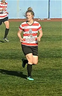 Serra Çağan obtained her license on June 10, 2008, for her hometown club İzmit Saraybahçe Belediyespor.[1] After appearing in eight matches in one season of the Turkish Women's Second League, she transferred to İzmit Belediyespor, which was in the Regional League. At the end of the 2009–10 season, her team was promoted to the Second League, and the next season to the First League. She capped in 50 matches scoring 21 goals in three seasons. In the 2012–13 season, she was with İzmit Çenesuyu Plajyoluspor in the Second League again, where she netted 14 goals in 14 matches. For the next season, she signed with Karşıyaka Koleji Spor, another İzmit-based club.[2][3][4] Çağan played in 33 games and scored 19 goals in two seasons between 2013 and 2015.[1]