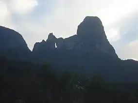 The Serra Furada State Park is divided between the municipalities of Orleans and Grão Pará, Santa Catarina. It has an area of 1,330 hectares (3,300 acres).[1] The buffer zone covers 9,377 hectares (23,170 acres), with a perimeter of 77.5 kilometres (48.2 mi).[2] The park's name is from a cleft in a sandstone rock about 45 metres (148 ft) high and 8 metres (26 ft) wide that can be seen from several kilometers away.[1] The rock is most often viewed from the Morro da Igreja, the site of the air traffic control radar towers for southern Brazil.[3]