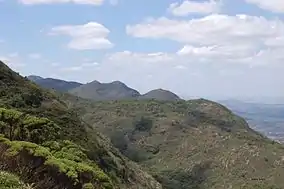The Sete Passagens State Park is in the municipality of Miguel Calmon, Bahia, with an estimated area of 2,821 hectares (6,970 acres).[1] It is in the Chapada Norte region of the state, 367 kilometres (228 mi) from Salvador, the state capital.[2] It is in the Itapicuru River basin. It is an important source of water in a drought-prone area, with numerous springs that supply streams to contribute to the Itapicuru-Mirim River, a major tributary of the Itapicuru. The park covers the Campo Limpo, Sapucaia and Jaqueira ranges to the south of the Jacobina range.[1] The park contains dozens of greens hills cut by valleys. The highest point has an altitude of 1,270 metres (4,170 ft).[2] There are prehistoric rock paintings in a small grotto at the top of the mountain.[2]