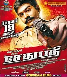 Sethupathi is a 2016 Indian Tamil-language action thriller film written and directed by S. U. Arun Kumar and produced by Shan Sutharsan under the Vansan Movies banner. It feature Vijay Sethupathi as Police Officer.[1][2] The film revolves around a police officer whose reputation runs into trouble when a young suspect is severely injured in his custody and threats from his enemies increase.