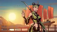 Wasp is the fourth demon encountered in Shadow Fight 2. She is the daughter of The Pirate King. With her father missing, Wasp became the new Pirate King. As with the other demons, she has five bodyguards who have their names themed on the sea. However, the first three "bodyguards" are members of "New Blood", a rebel group composed of the pirate crews that do not trust Wasp. The last two "bodyguards" are Wasp's loyal men.