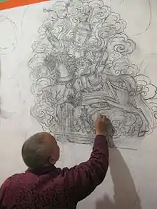 Lama Shashi is a master in Buddhist thangka painting and is committed to re-establishing residential monk community at Chhairo gompa. The Tulachan family is from the neighbouring village of Tukuche, to the south and comes from a long line of Buddhist artists. His father, Kamal Dhoj Tulachan,[1] and grandfather are responsible for many wall paintings and statues to be found in gompas, chortens and private household shrines in villages of the Thak Kola (upper Kali Gandaki) area.[2][3]
