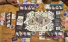 SHASN (transl. Governance) is a multiplayer political strategy board game created by Zain Memon, and published by Memesys Culture Lab,[1] where each player takes on the role of a politician contesting elections and is required to take a stand on various political and ethical issues.[2][3] The game was launched on the global crowdfunding platform, Kickstarter on 16 July 2019,[4] and raised $339,045 from 4,209 backers.[5] SHASN was inspired by the documentary An Insignificant Man, on the rise of the Aam Aadmi Party politician and Delhi chief minister Arvind Kejriwal.[6][7]