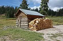 • Wood sheds are sheds used for the storage of large quantities of firewood. Woodsheds help protect firewood from adverse weather and moisture, especially in snowy or wet climates. Woodsheds are commonly in close proximity to buildings heated by a wood-burning stove, such as a log cabin.
