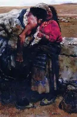 Sheepherder is an 1980 oil painting created by Chinese artist Chen Danqing in 1980 in Tibet.[1] This painting is considered one of the Tibet Series. He captures a moment where a sheepherder takes to kiss a woman.[2]