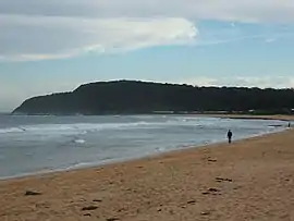 ![]() Shelly Beach on a windy day in 2010, taken from the sand dunes. Crackneck Lookout in the background. | |||||||||||||||