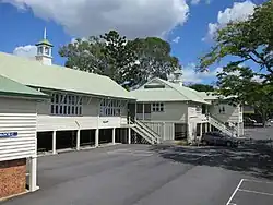 Sherwood, like many riverside suburbs in Brisbane, was significantly affected by the flood of 1893. The school grounds, along with surrounding residences in low-lying areas, were inundated. Despite the floods and the economic depression of the 1890s, enrolments rose through the turn of the century and the school committee advocated the urgent need to extend the school building.[37] Tenders were sought in late 1899, and in 1900 the 1887 Ferguson-designed school building was extended at cost of £182.[38][39] An image of the extended building around that time shows it had a roof fleche.[40][1]