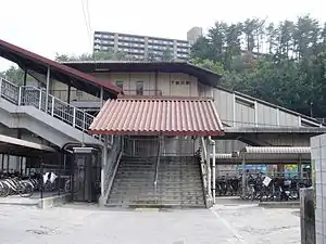 The current station building was built sometime during the Japanese National Railways era. An automatic ticket gate was installed in 2007.