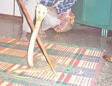 - ↑ "Face to face with the holy cobras" (web). During the Hindu festival of the snake god, farmers capture cobras from their fields and let villagers shower them with offerings. They believe it will bring good fortune for next year. Jeremy Grange joined some of them in Shirala, in the Indian state of Maharashtra. BBC News. 4 October 2007. Retrieved 23 January 2008.